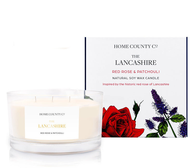 The Lancashire - Red Rose and Patchouli 3 Wick Soy Candle - Pack of 4